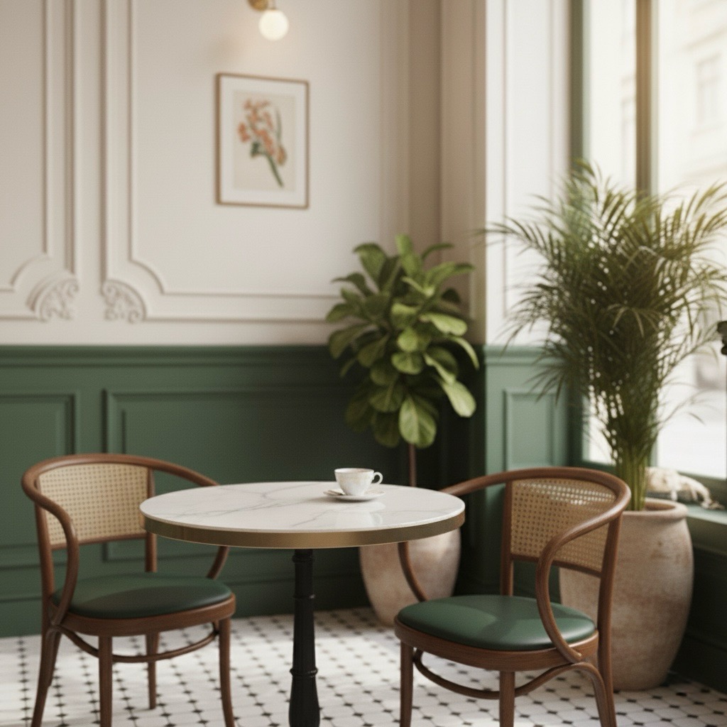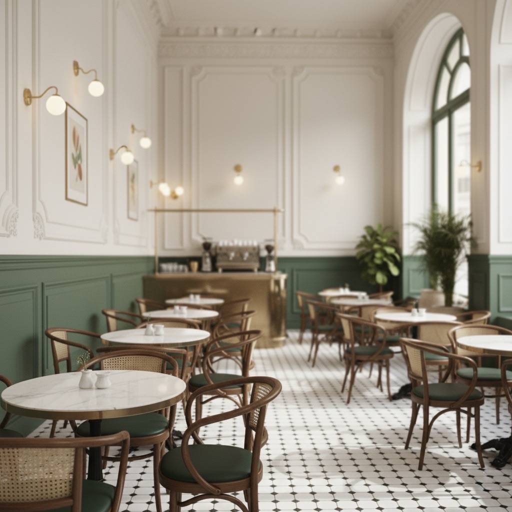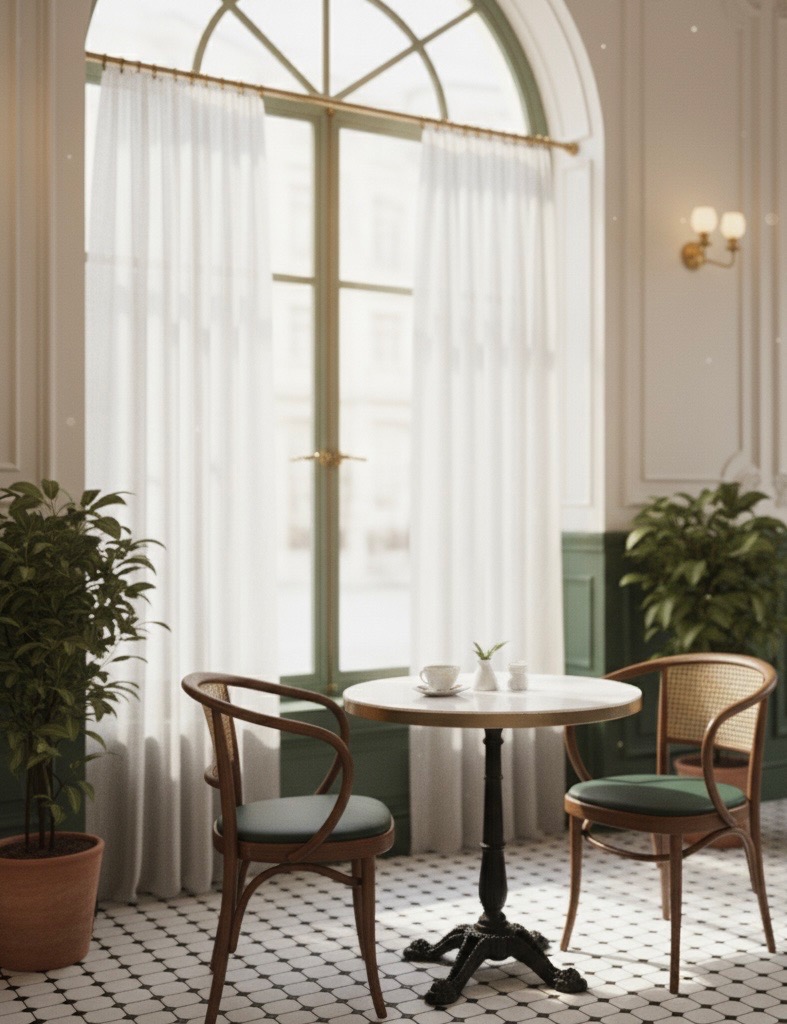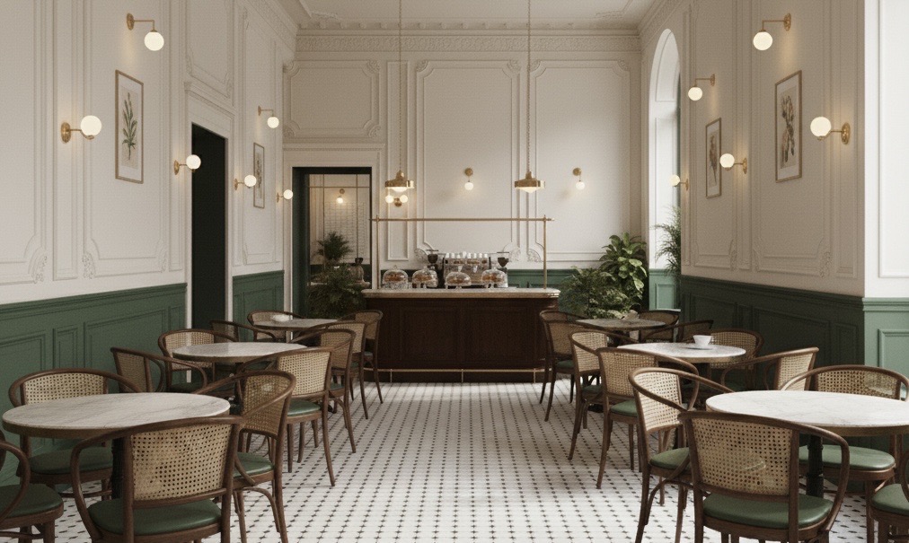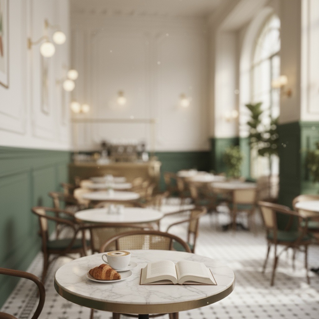 A calm, European-inspired café shaped with layered detail and quiet character.