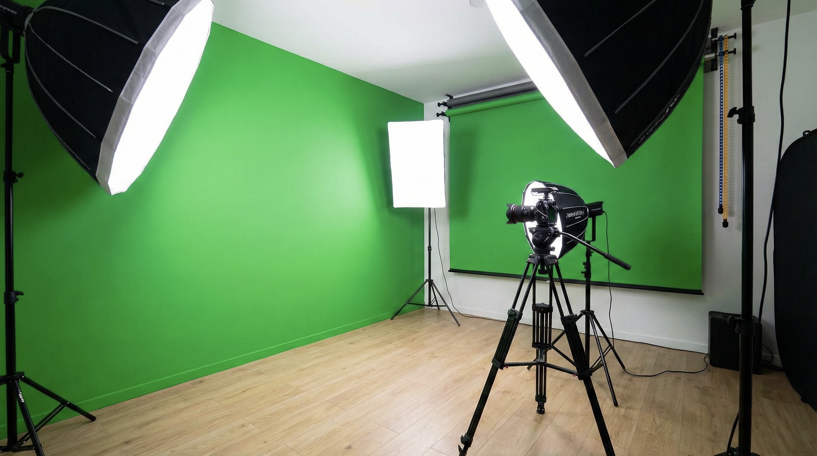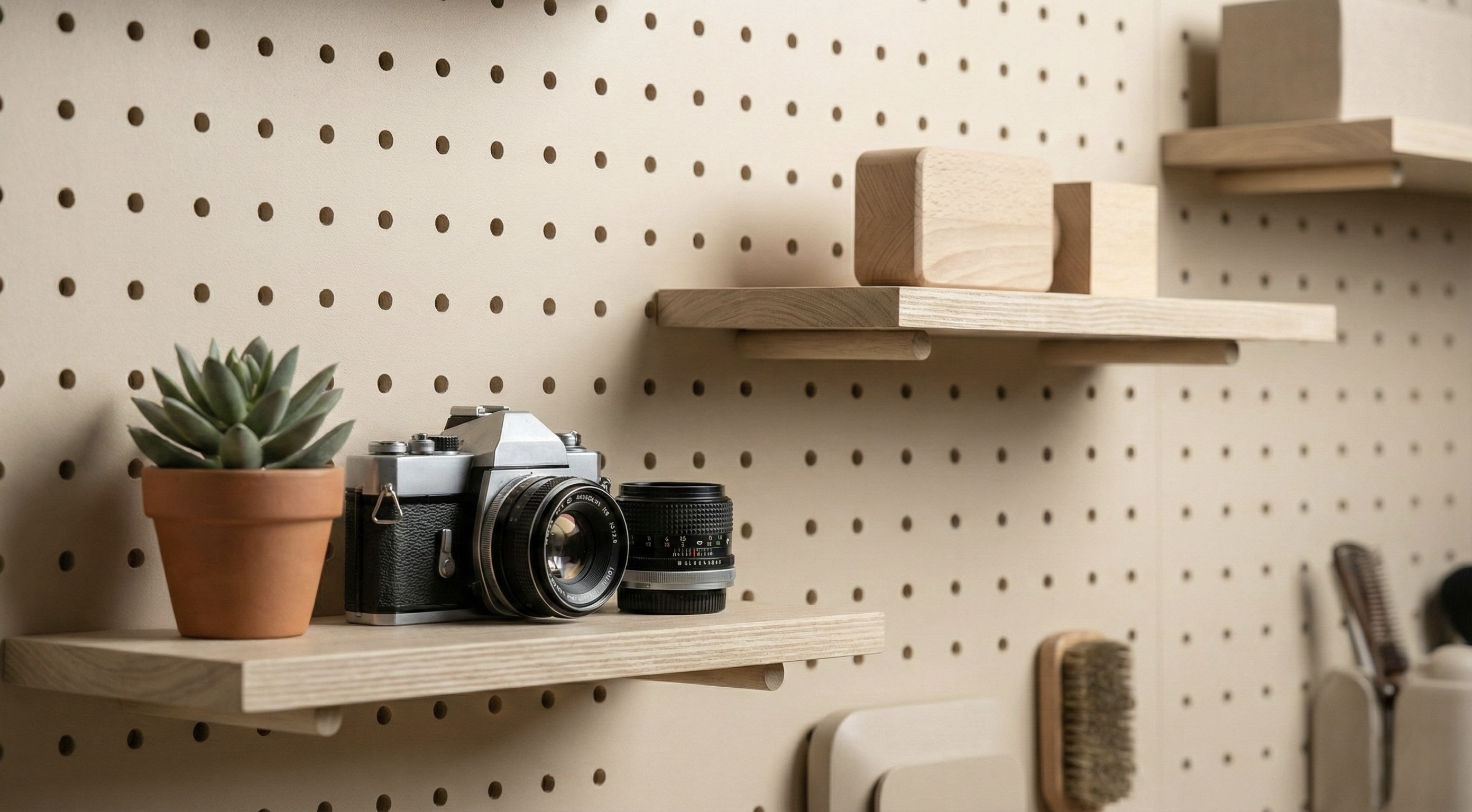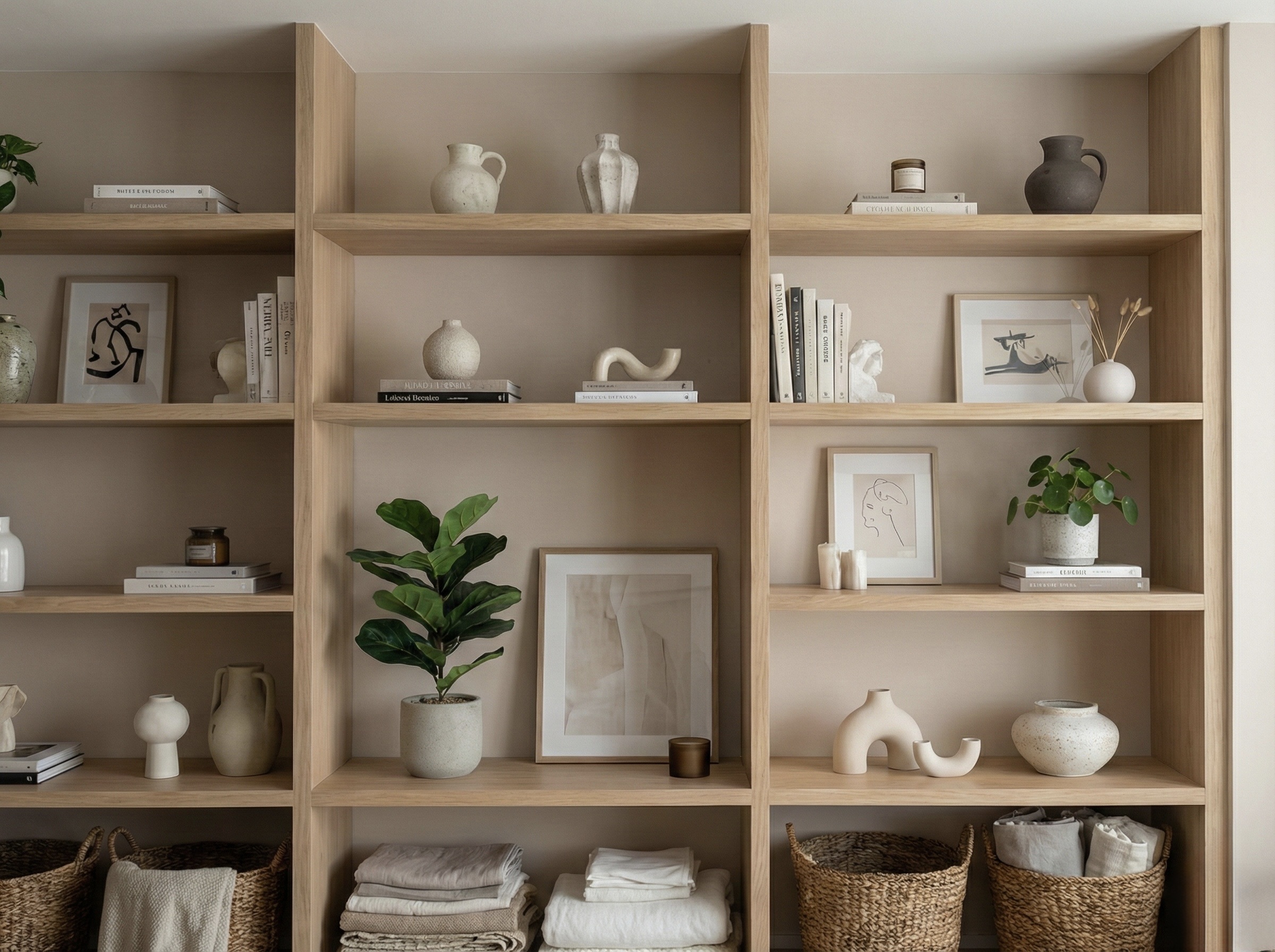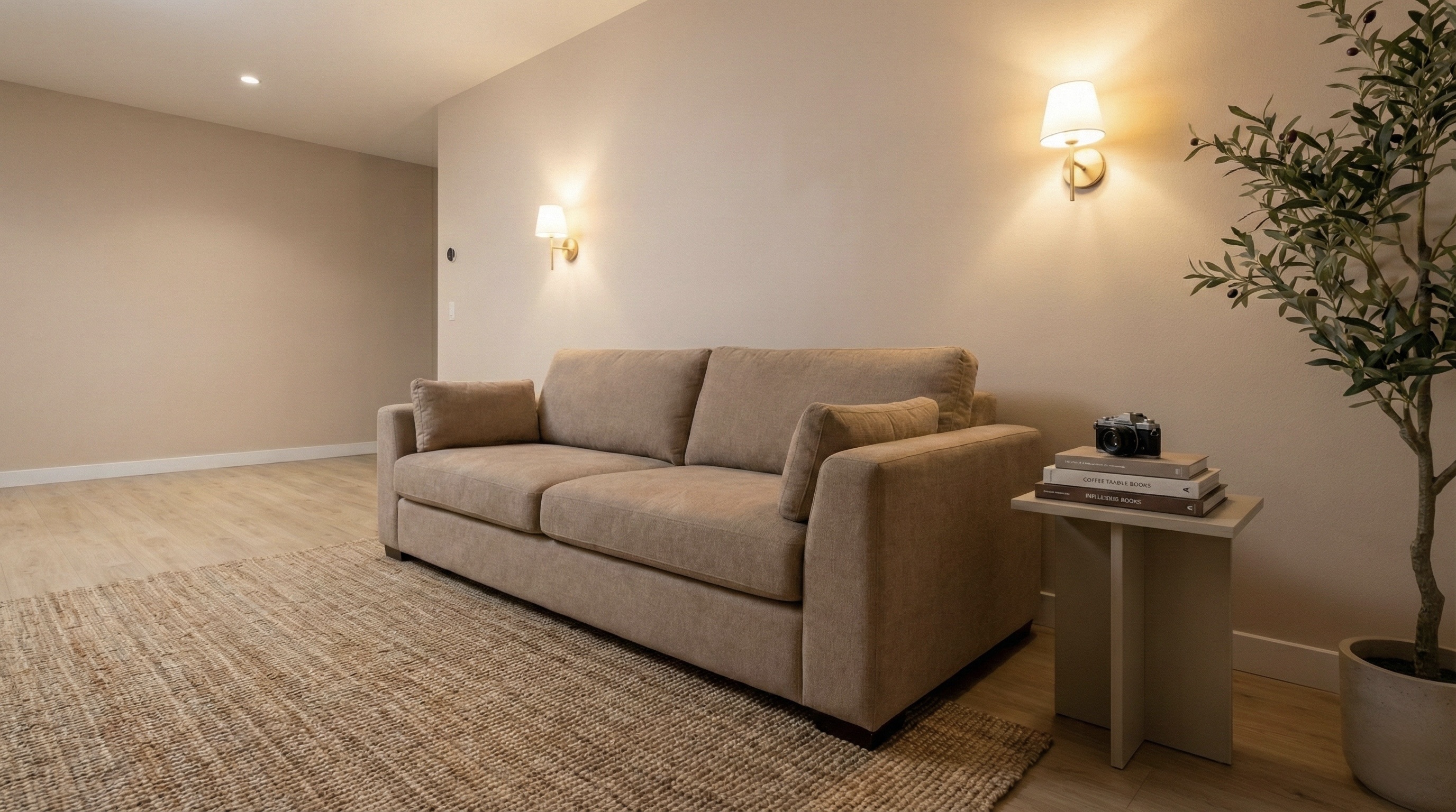A clean, modern content studio shaped with warm minimal tones and balanced lighting.