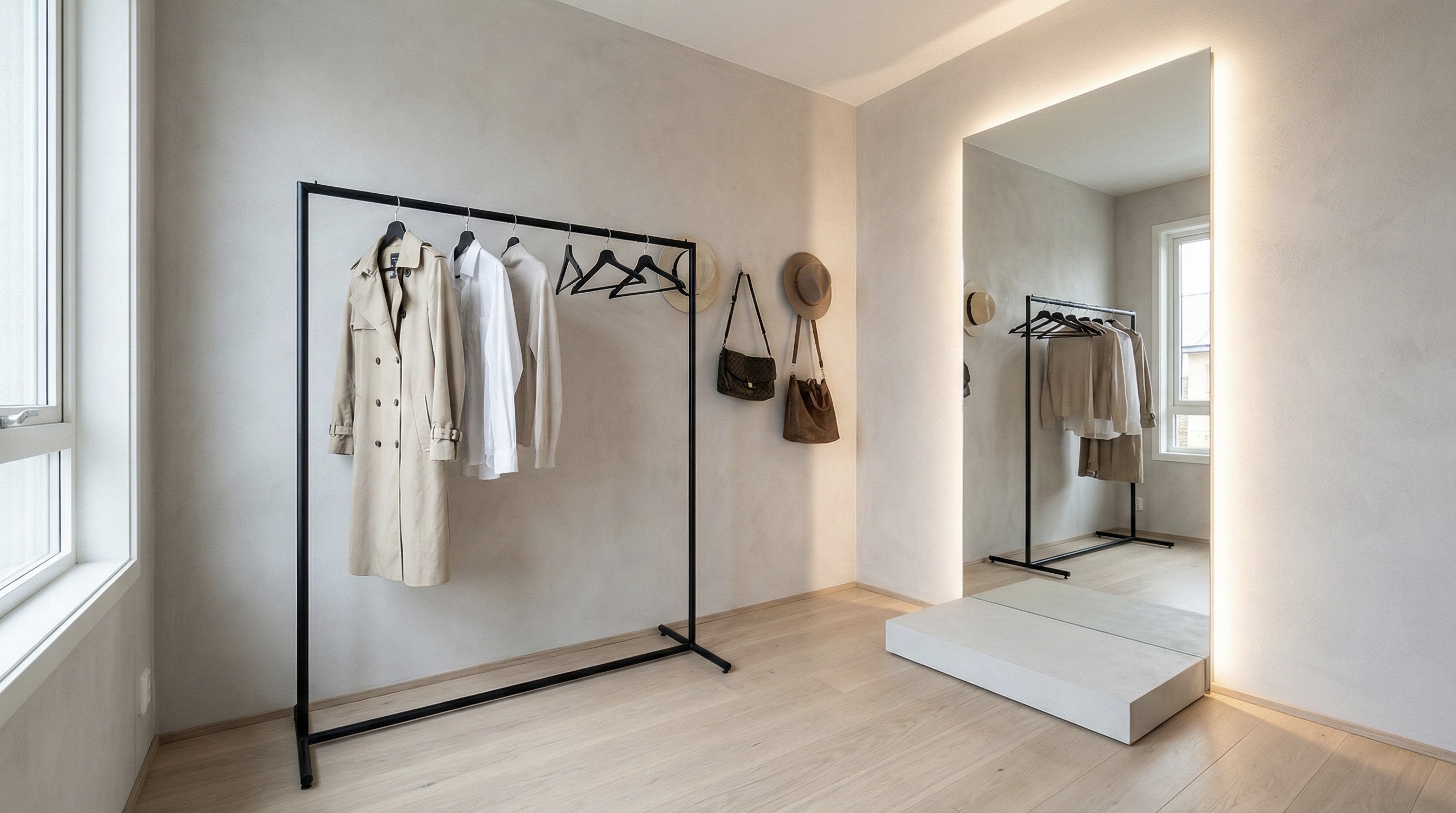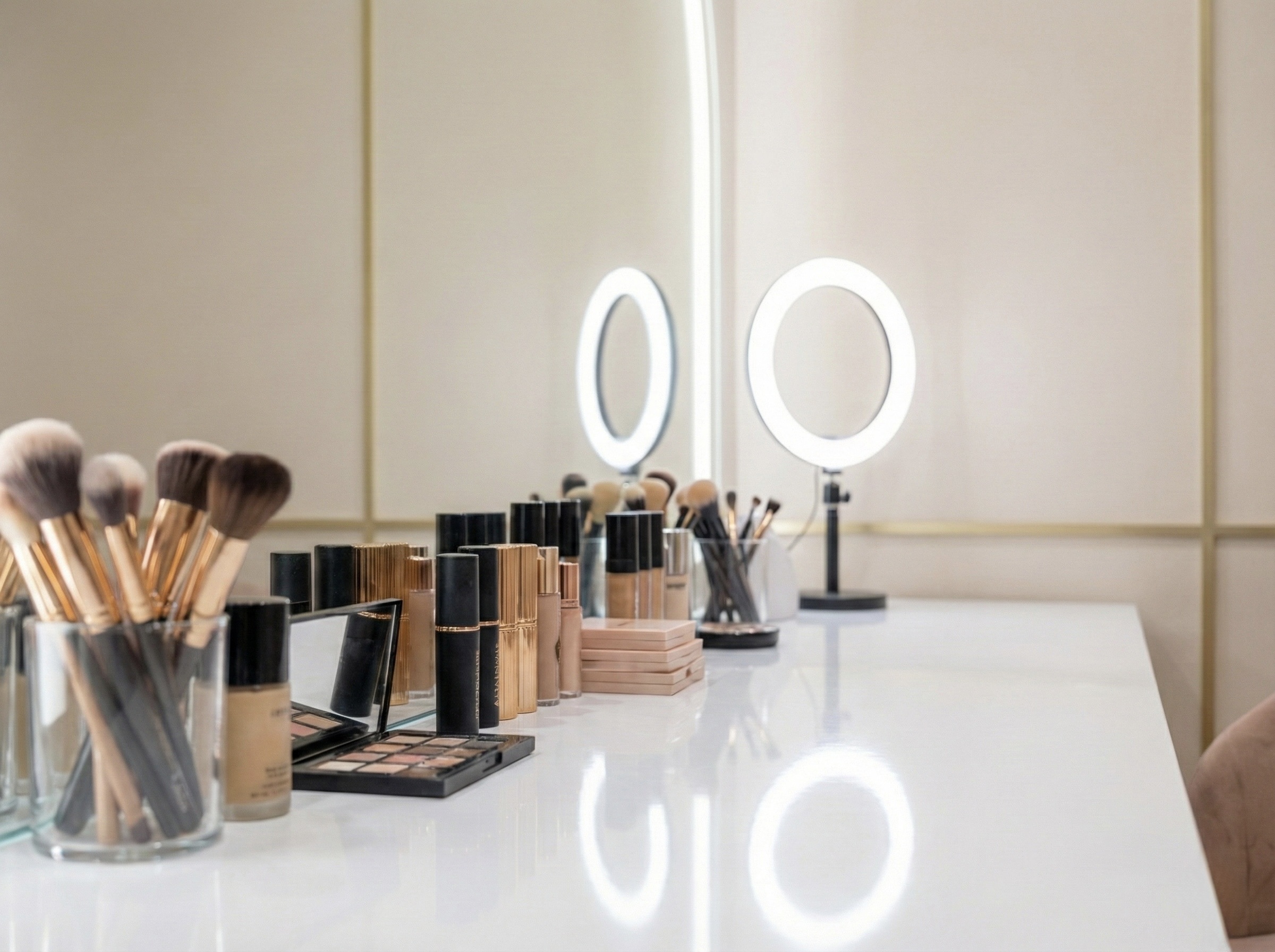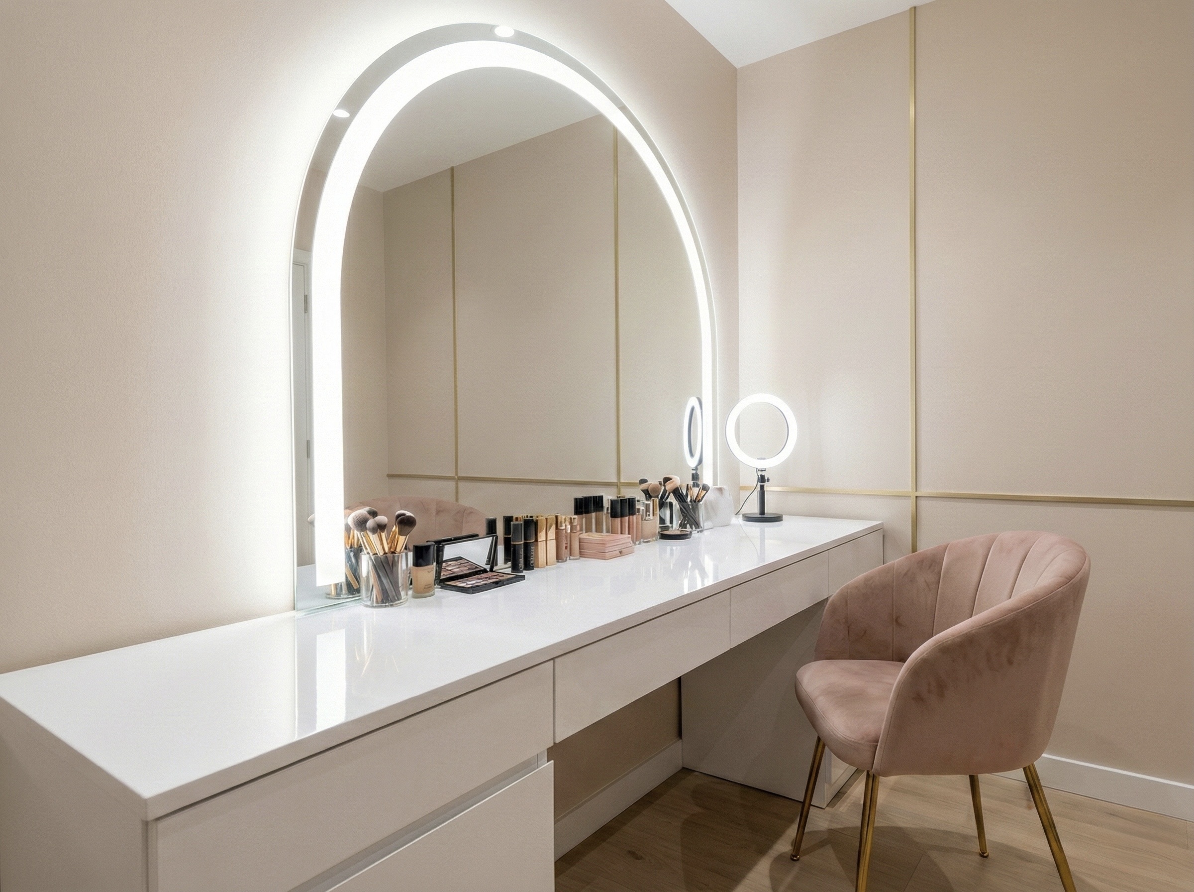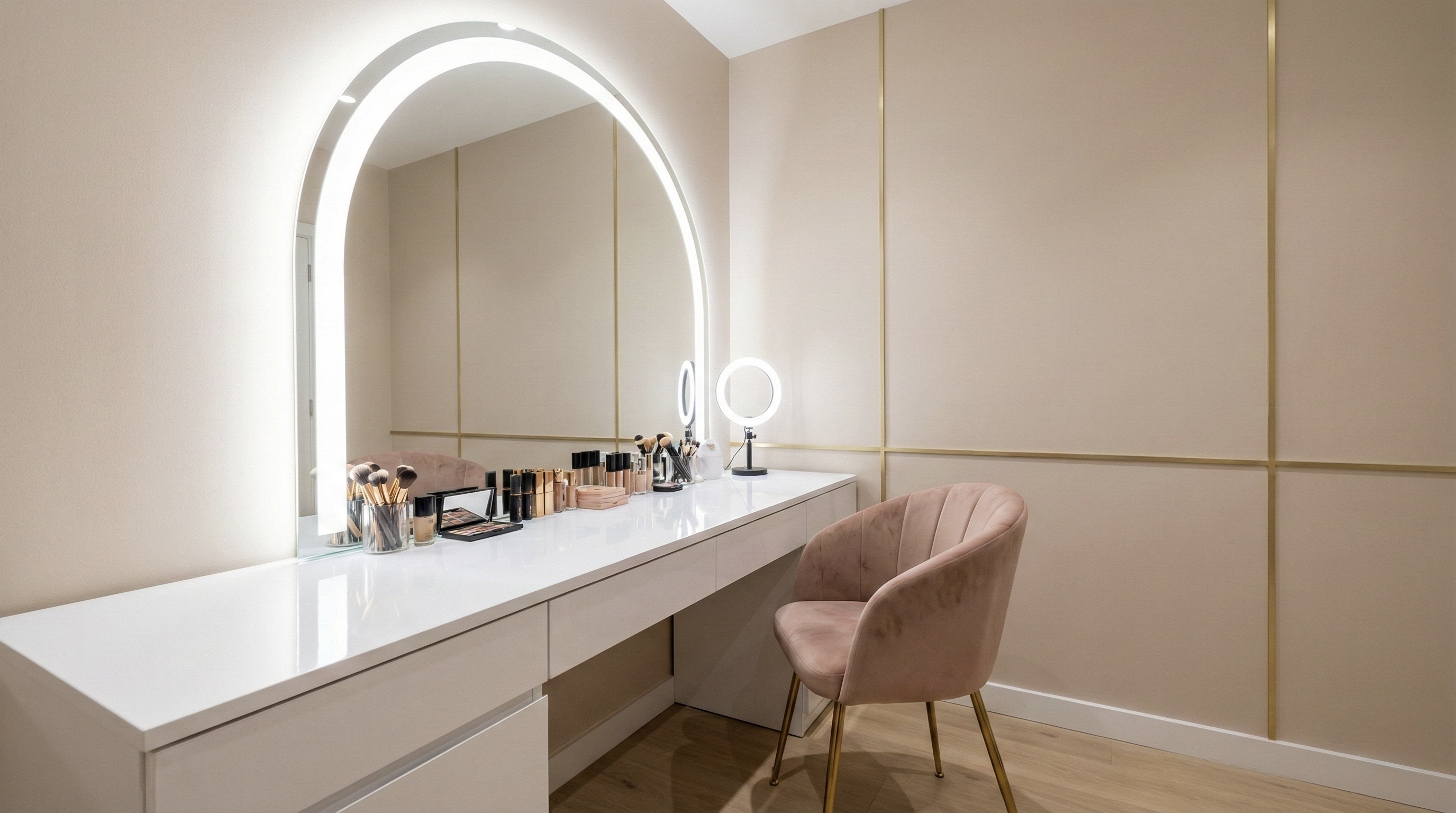 Defined corners for vanity, podcasting, styling and product shoots create purposeful spaces.
